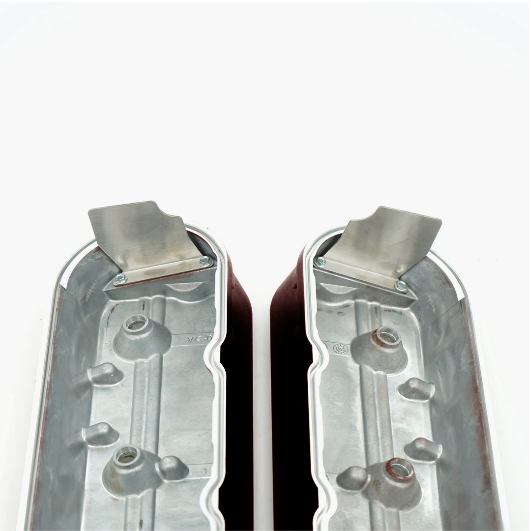Boostline valve covers retain stock mounting height and allow the use of OE style GM gaskets and bolts, while being molded in a unique plane to allow nose clearance for shaft rockers. With -12AN ORB vents on both ends, you have a wide variety of options for catch can or vacuum pump plumbing. Also featured is a unique baffle design/splash guard that protrudes below the valve cover surface.